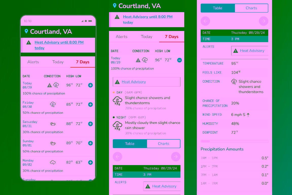 We included numbers, charts, and narratives because we learned people have a wide range of preferences for how, and how much, weather data they consume.